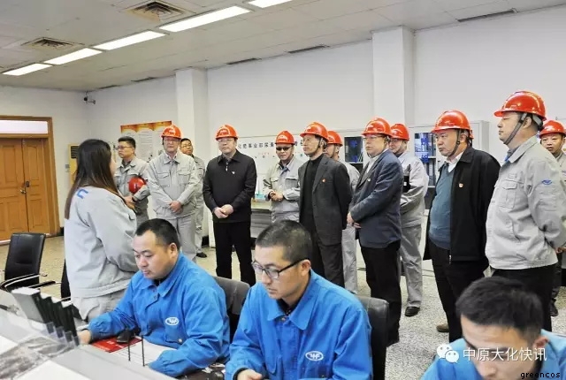 在天然氣化工裝置區(qū),馬富國在聽取了有關(guān)生產(chǎn)裝置的運行情況介紹后,又向化肥事業(yè)部的管理人員詳細詢問了他們在經(jīng)營管理、員工培訓、新產(chǎn)品開發(fā)等方面的好經(jīng)驗、好做法,并勉勵大家不僅要優(yōu)化裝置運行,搞好安全生產(chǎn),而且要不斷進行知識更新,開闊眼界,努力開發(fā)出具有高附加值的產(chǎn)品,走高端發(fā)展的道路。在煤化工裝置區(qū),馬富國親切看望了生產(chǎn)一線員工,并對甲醇裝置長周期運行所取得的成績給予了充分肯定,同時要求甲醇事業(yè)部要安全、環(huán)保一起抓,精心操作,穩(wěn)定運行。在中原大化公司展廳,馬富國一行興致勃勃地參觀了公司發(fā)展歷程展覽,并指示中原大化要扎實做好綠宇公司新三板上市的各項工作,加快推進上市步伐。